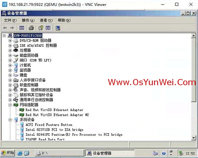 KVM下windows虚拟机默认disk使用的是Qemu IDE硬盘,网卡默认是100M网卡。