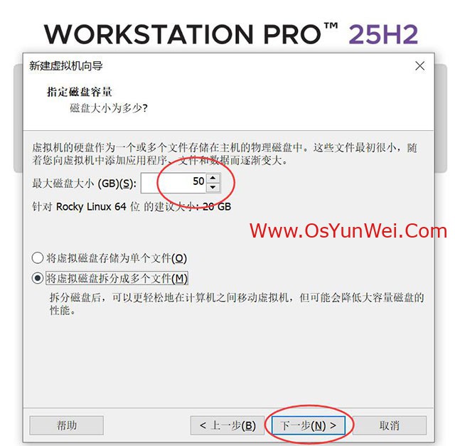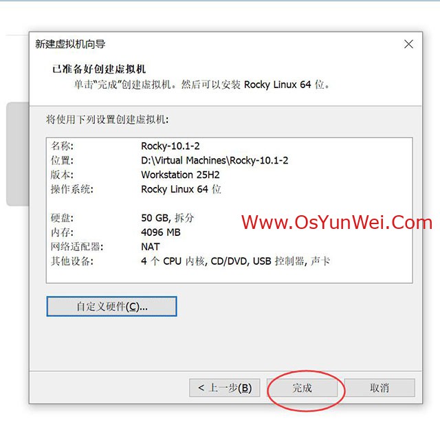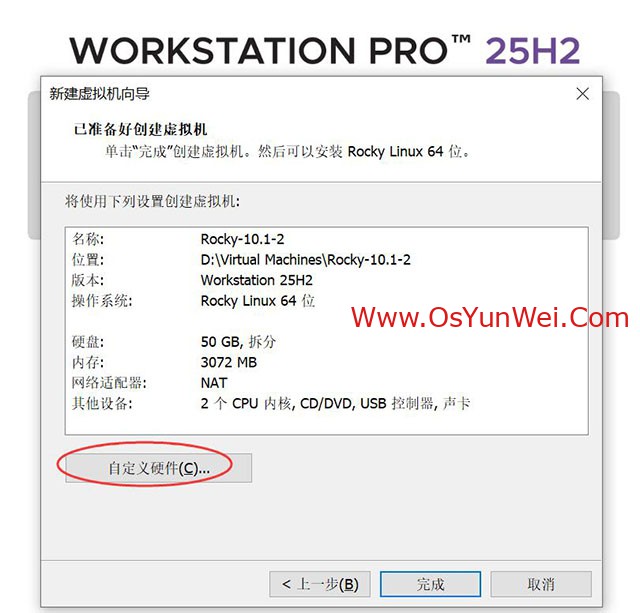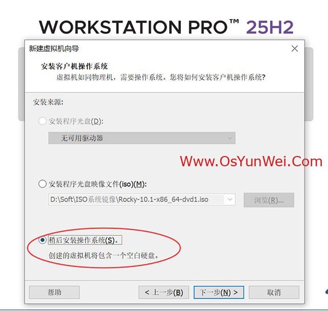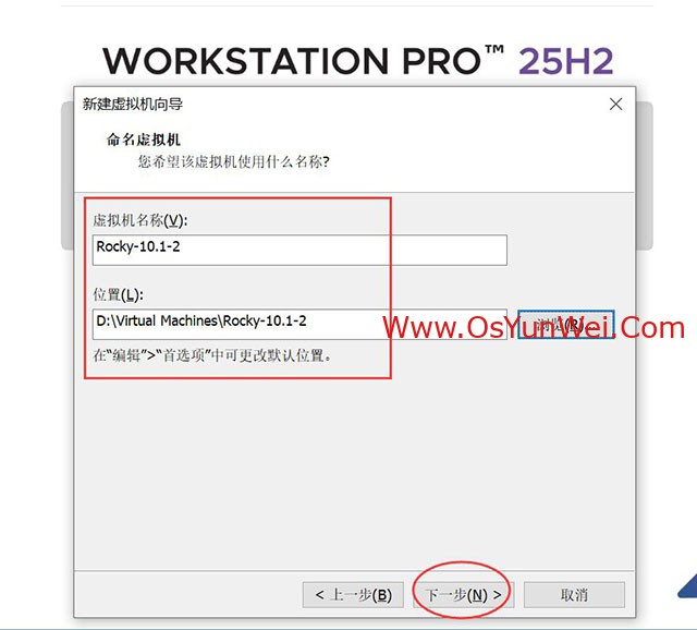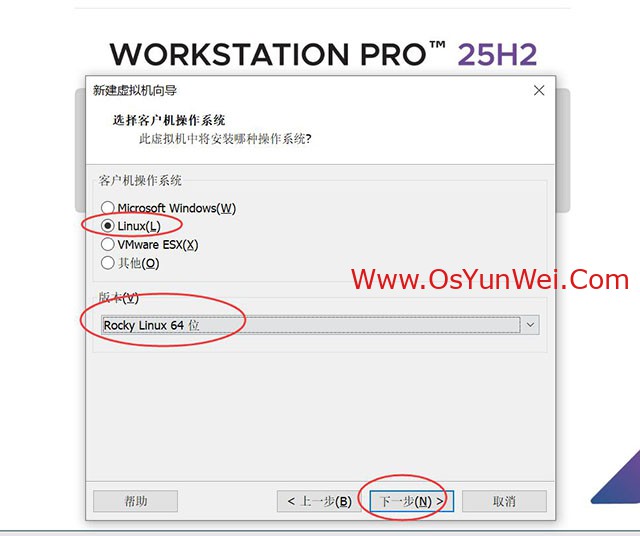 最新版本的VMware® Workstation 专业版 25H2虚拟机安装的时候已经支持最新的 Rocky Linux 64位 版本,我们直接选择这个虚拟机模板即可。