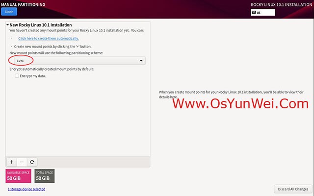 服务器建议使用LVM分区模式,可以动态扩容