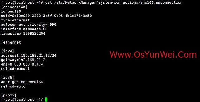 vi /etc/NetworkManager/system-connections/ens160.nmconnection