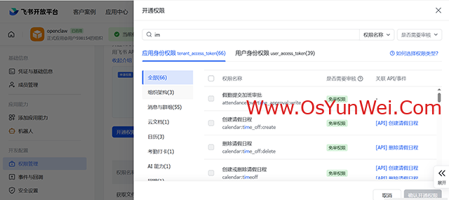 4.4开发配置-权限管理-开通权限-输入:im 搜索