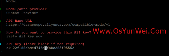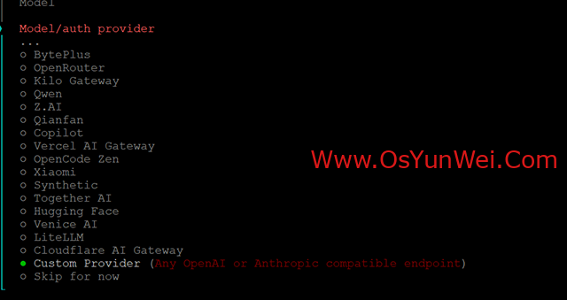 选择: Custom Provider (Any OpenAI or Anthropic compatible endpoint)