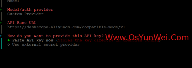 Paste API key now (Stores the key directly in OpenClaw config)
