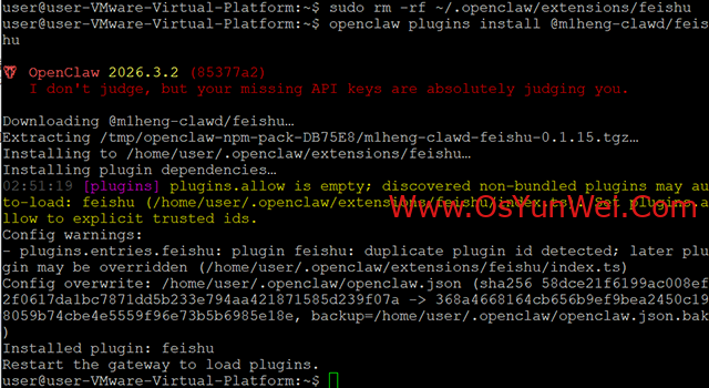 sudo rm -rf ~/.openclaw/extensions/feishu