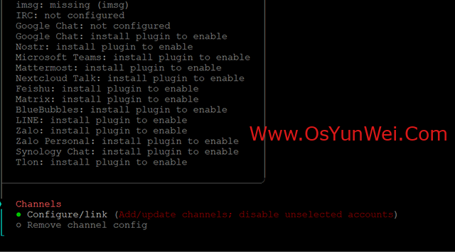 选择: Configure/link (Add/update channels; disable unselected accounts)