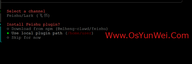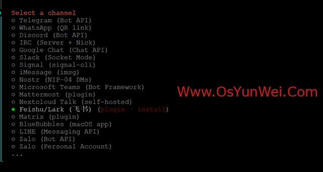 选择:Feishu/Lark (飞书) (plugin · install)