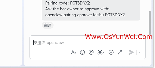 #在飞书机器人聊天对话框获取配对码