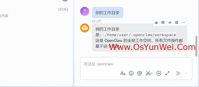 2、OpenClaw只能操作它所在的那个环境里的文件,并且只能操作工作区目录下的文件。