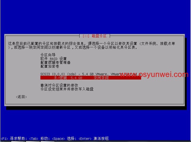输入分区大小,划分为交换空间,注意:交换空间的大小一般为物理内存的2倍