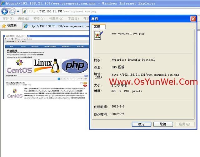 在网站根目录/usr/local/nginx/html/下上传一张图片www.osyunwei.com.jpg(大小为640*480),如下图所示