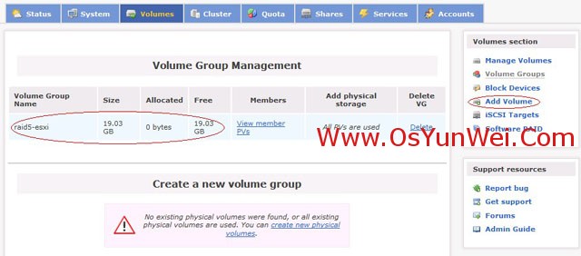 5、点右侧的Add Volume,创建逻辑卷,如下图所示: